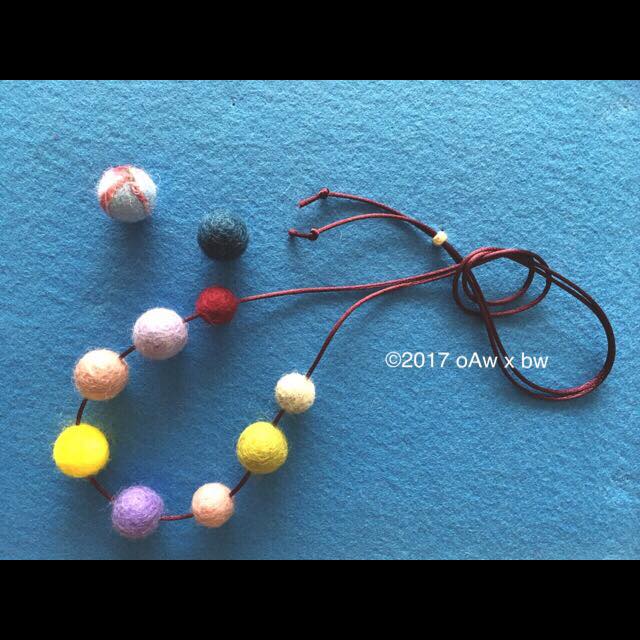 フェルトボールはお一人10個まで。ボールを通すサテンコードは1mあるので、ネックレスにする以外にも、ブレスレットやオーナメント、キーチェーンにつける飾りなど、何を作るかはお好みで。自分のために、誰かのために、作ってみませんか?