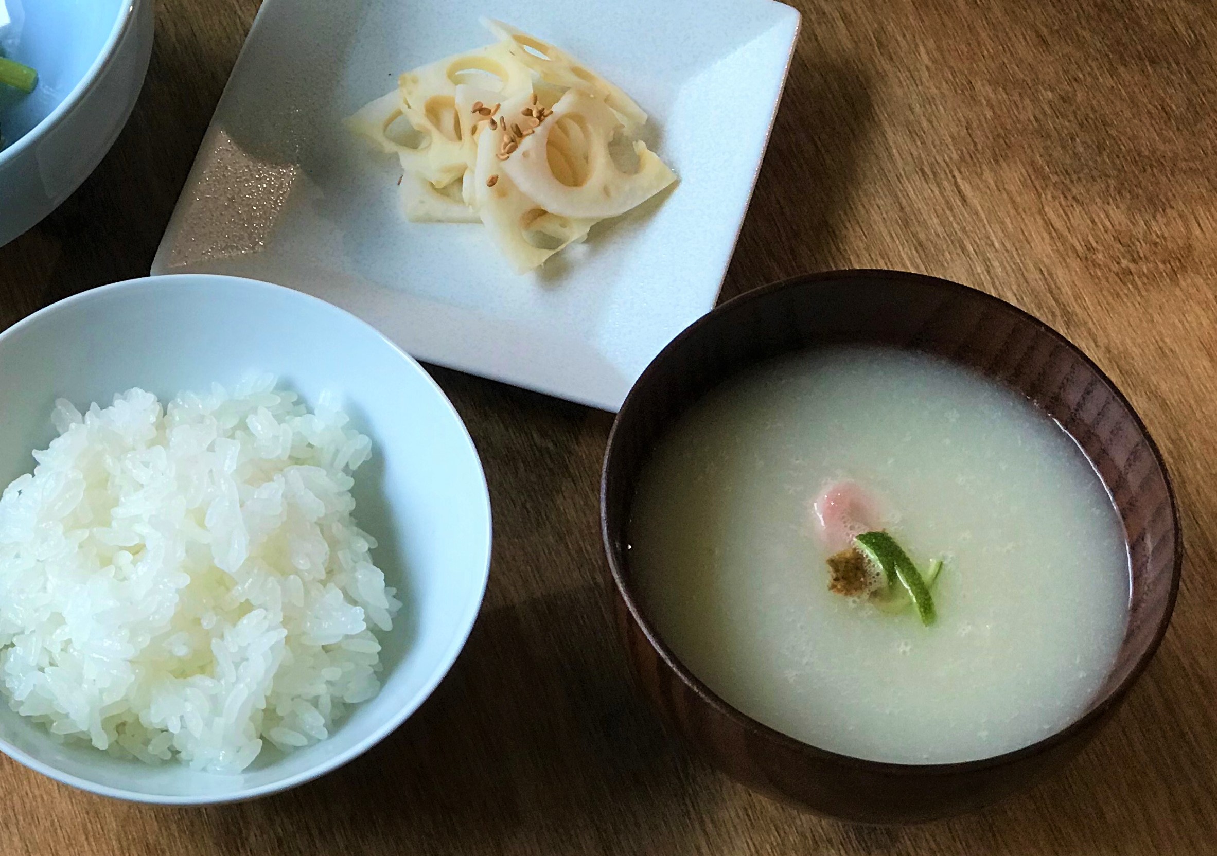 またお食事では、「いちにち入門」第1回(2019年9月開催)で体験した、日本の伝統料理「すりながし」とごはんを召し上がっていただく予定です。