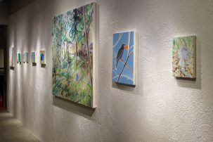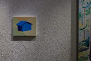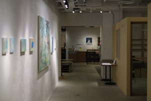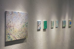 彼女とは一時期アトリエを共にしていたことがある。彼女の制作スペースは「今まさに制作中の現場」というよりも常に展覧会のようなたたずまいであった。ギャラリーなどの絵画を鑑賞するのために用意された空間に限らず、誰かの暮らしの気配を感じさせる場所であっても、作品の行く先々をたちまち自分の空間に染めていく。