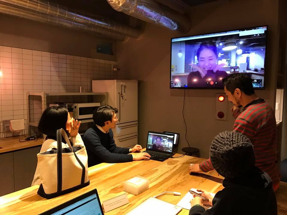 残念ながら参加することができなかったスタッフもモニターを通じて東京から参加!
