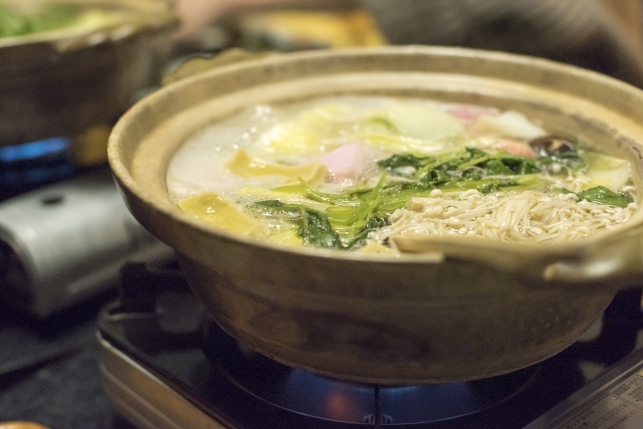 金沢の美味しい食材をつかった加賀料理と名物のお鍋、おいしいお酒をいただきます。