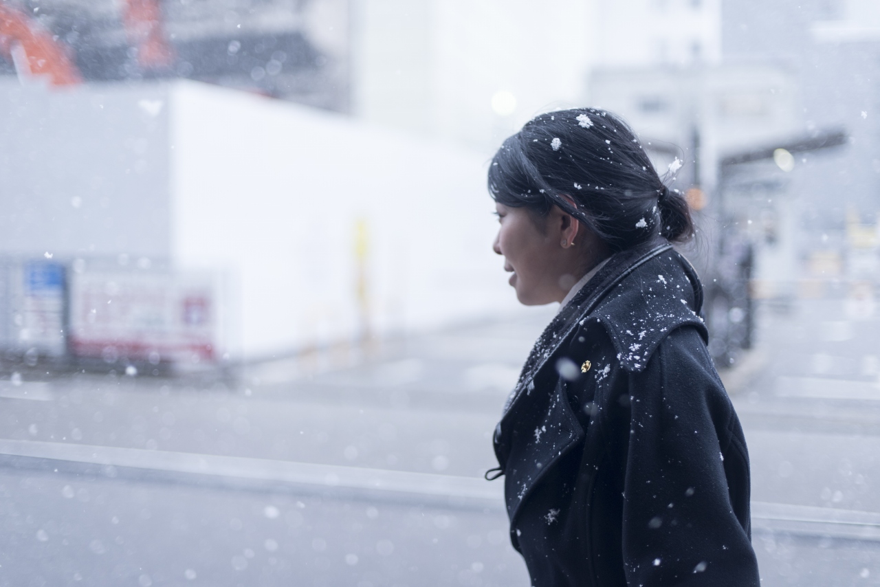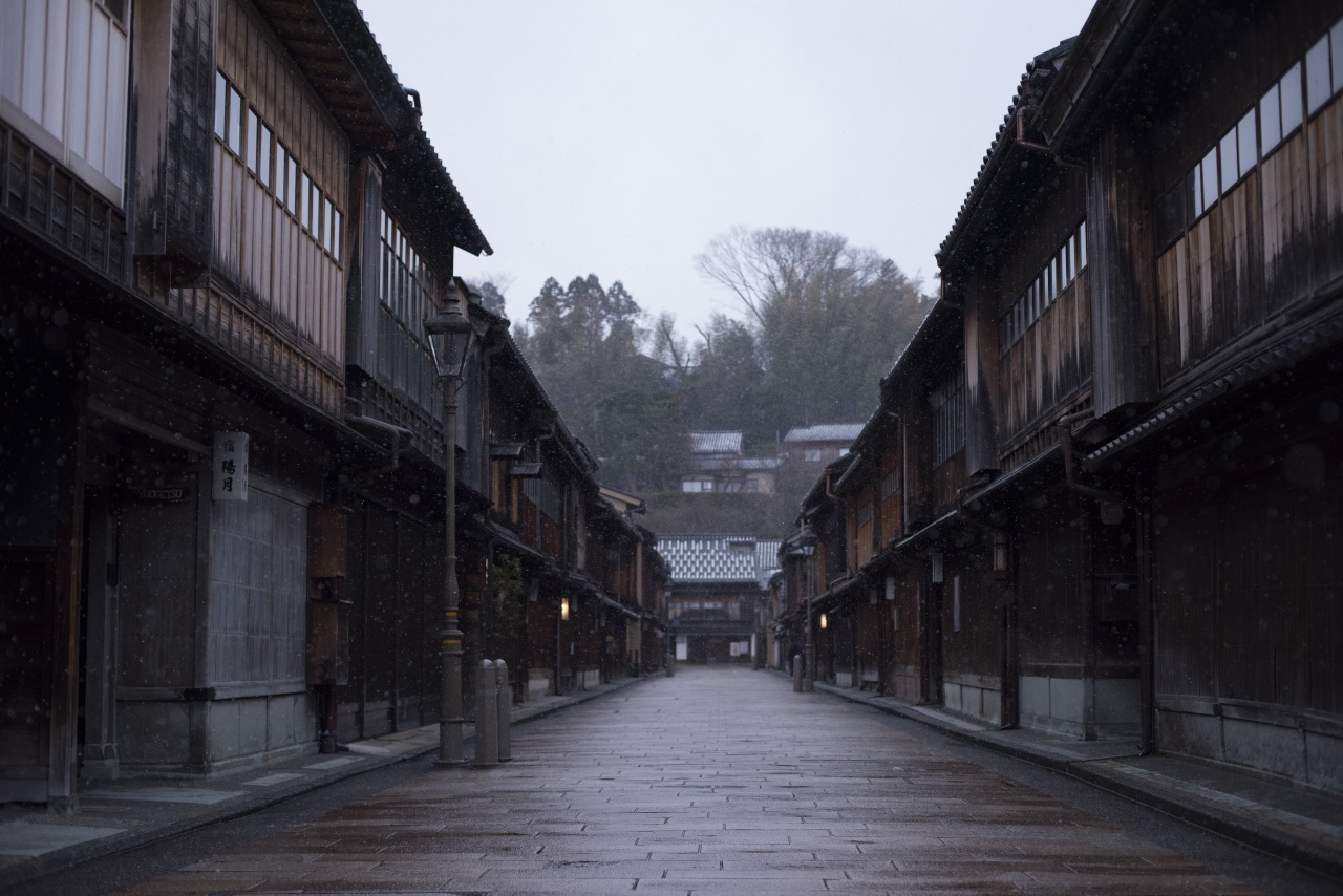 当日は冬の金沢を味わうために準備されたかのような雪模様。
