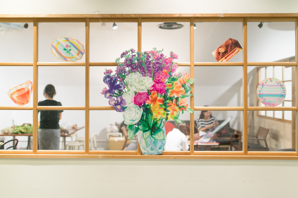 エントランスは、アニメーション作家であり、画家、マンガ家でもあるアーティスト・ぬQさんの作品で華やかに彩りました。