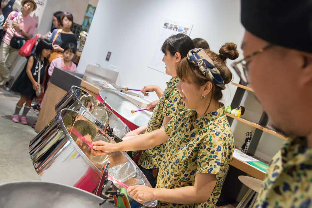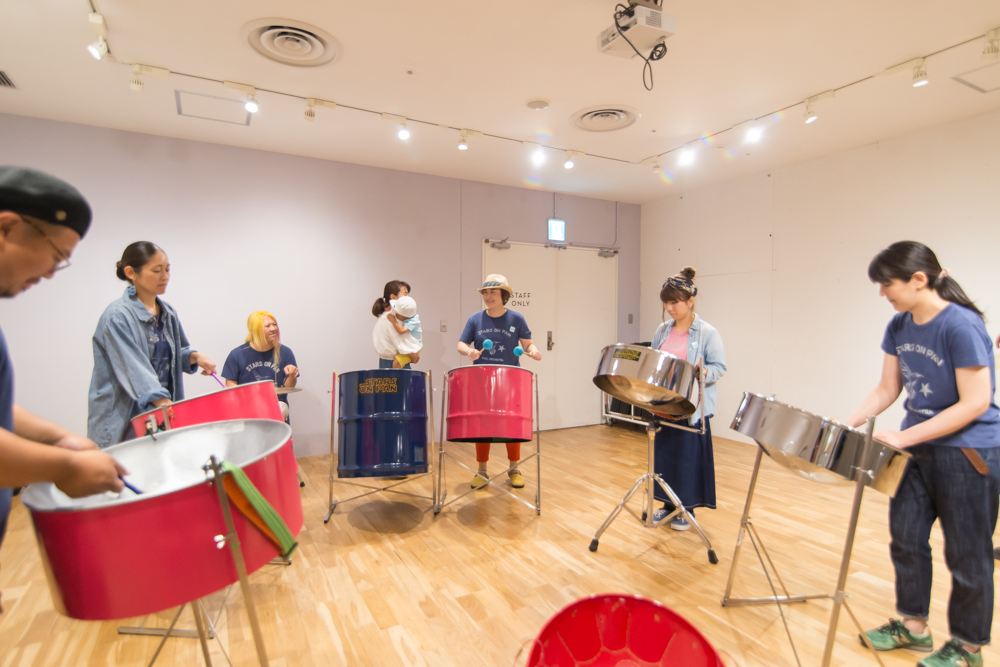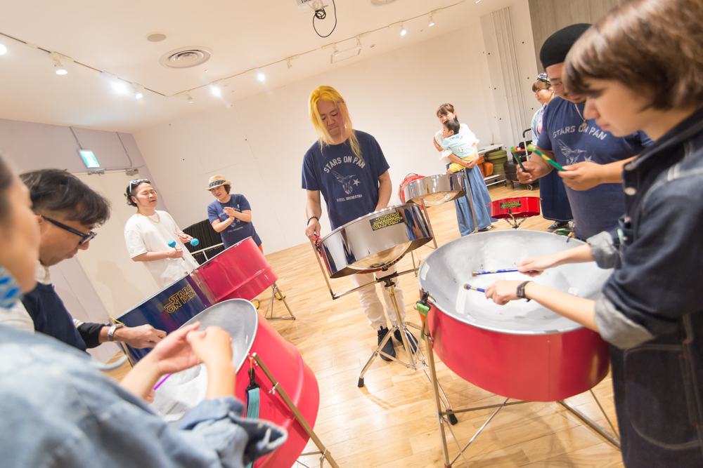 そんなスティールパンバンド「STARS ON PAN」はミニLIVEの前に、【STUDIO】で演奏体験ワークショップを開催。