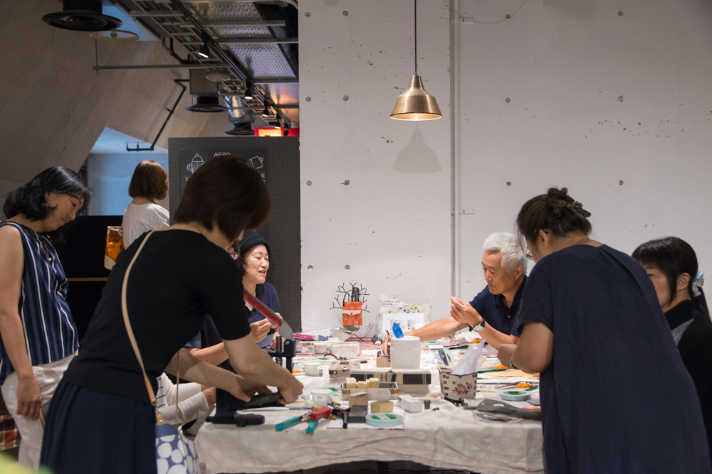 時にはひとつの作業に黙々と取り組み、時には周りの方々と談笑しながら、世代を問わず、熱中して手を動かす参加者の皆さんの表情は、とても魅力的。連続で別のワークショップを楽しむ方もいるなど、長居する人も多かった【WORK LOUNGE】は、終日居心地のよい空間でした。