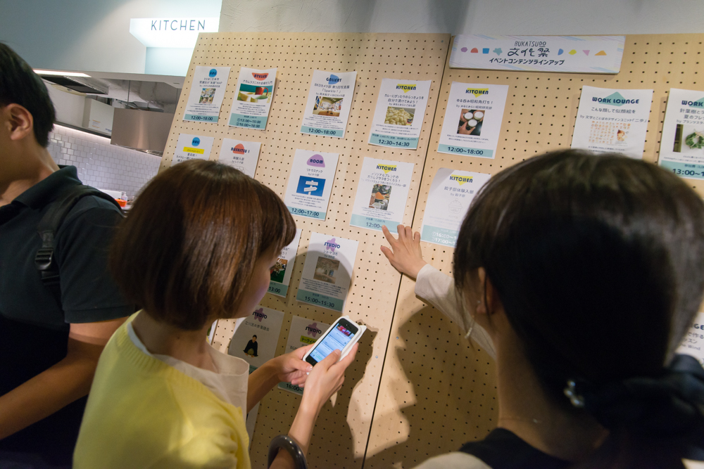 数ある文化祭のコンテンツを総覧できる場やBUKATSUDOで行われているさまざまな講座・部活が紹介されているスペース、BUKATSUDOを運営する㈱リビタの紹介スペースがありました。