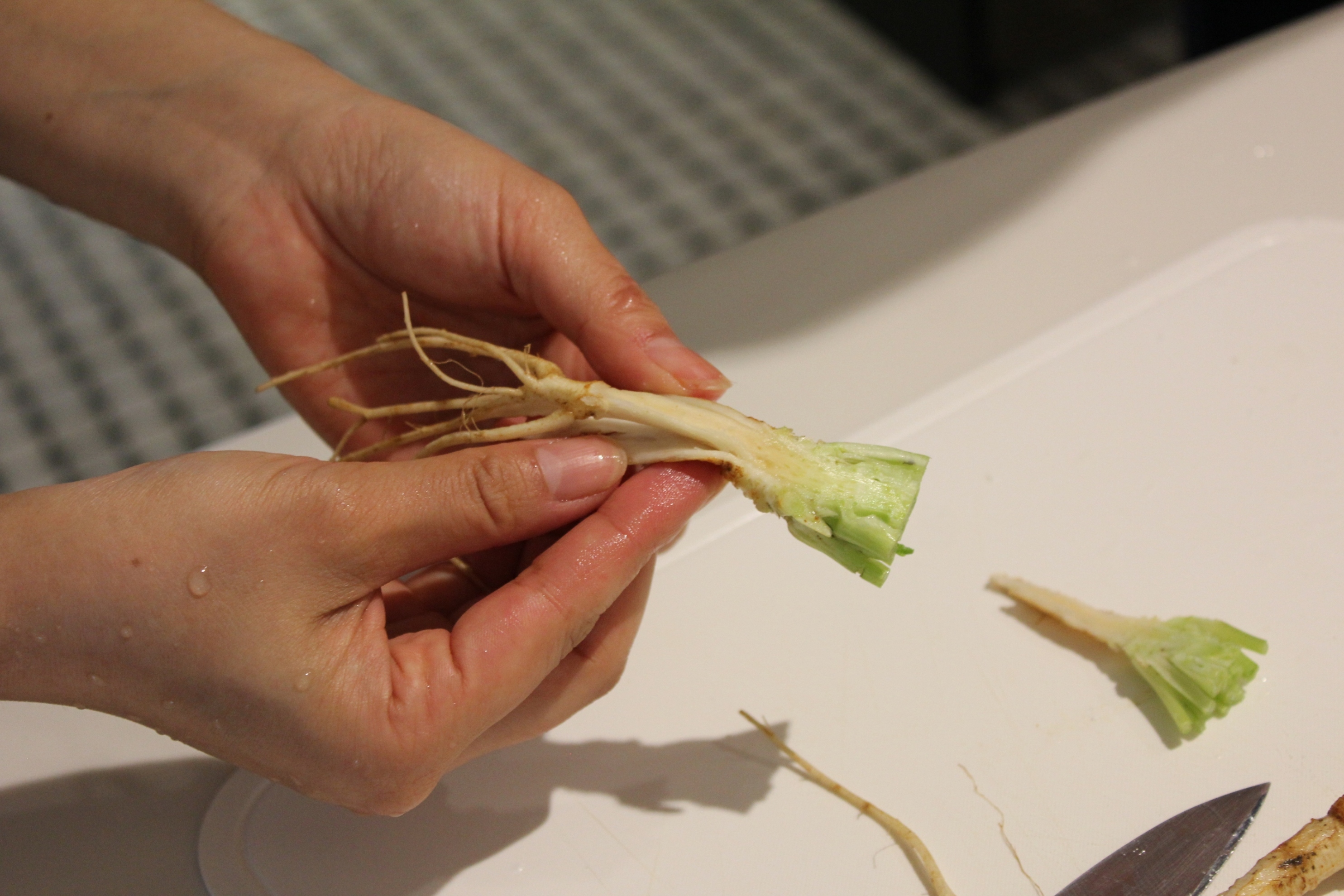 パクチーの根、ニンニク、白コショウを一緒に石臼で叩き潰して作ります。