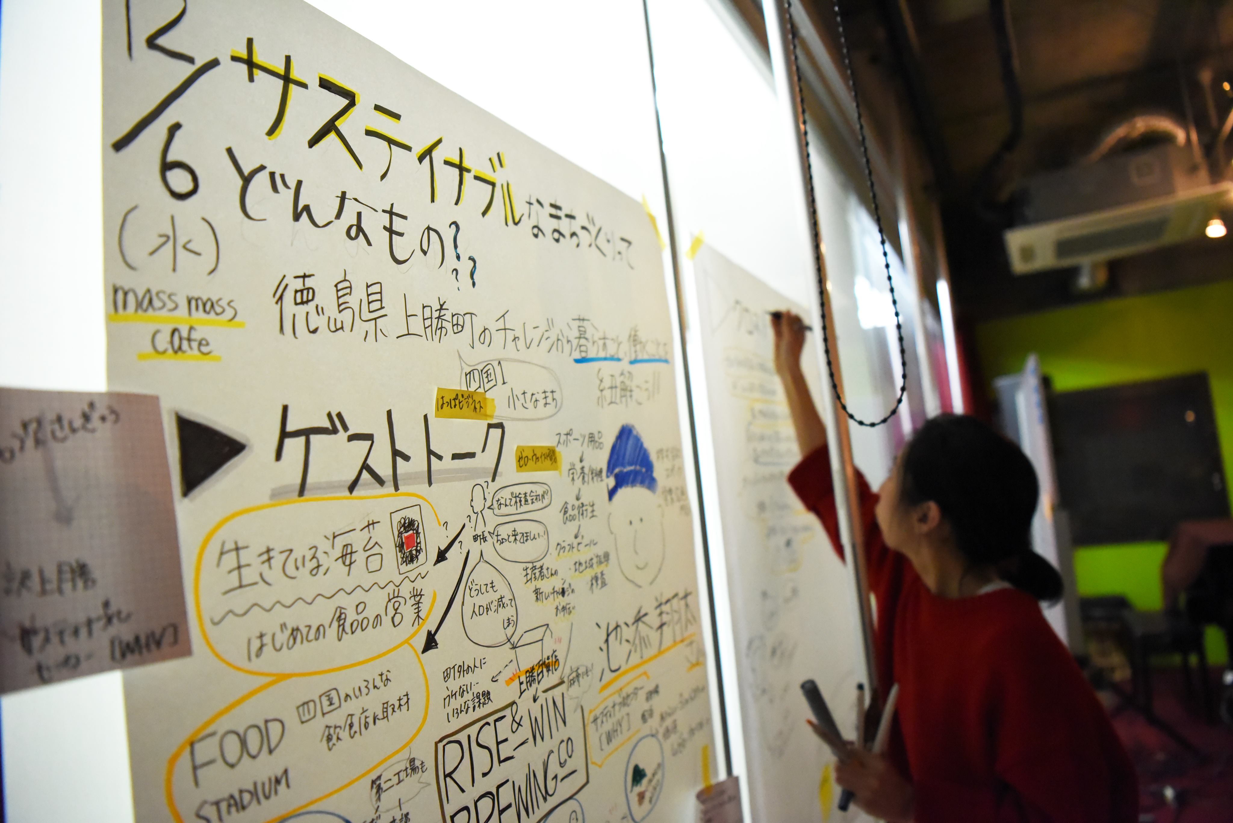 mass×massでのイベントでは、上勝町の説明や「ゼロ・ ウェイスト運動」の紹介、 そして今後取り組む予定のプロジェクトについて、 移住者代表として和田さんに実際の生活のお話をしていただきました。