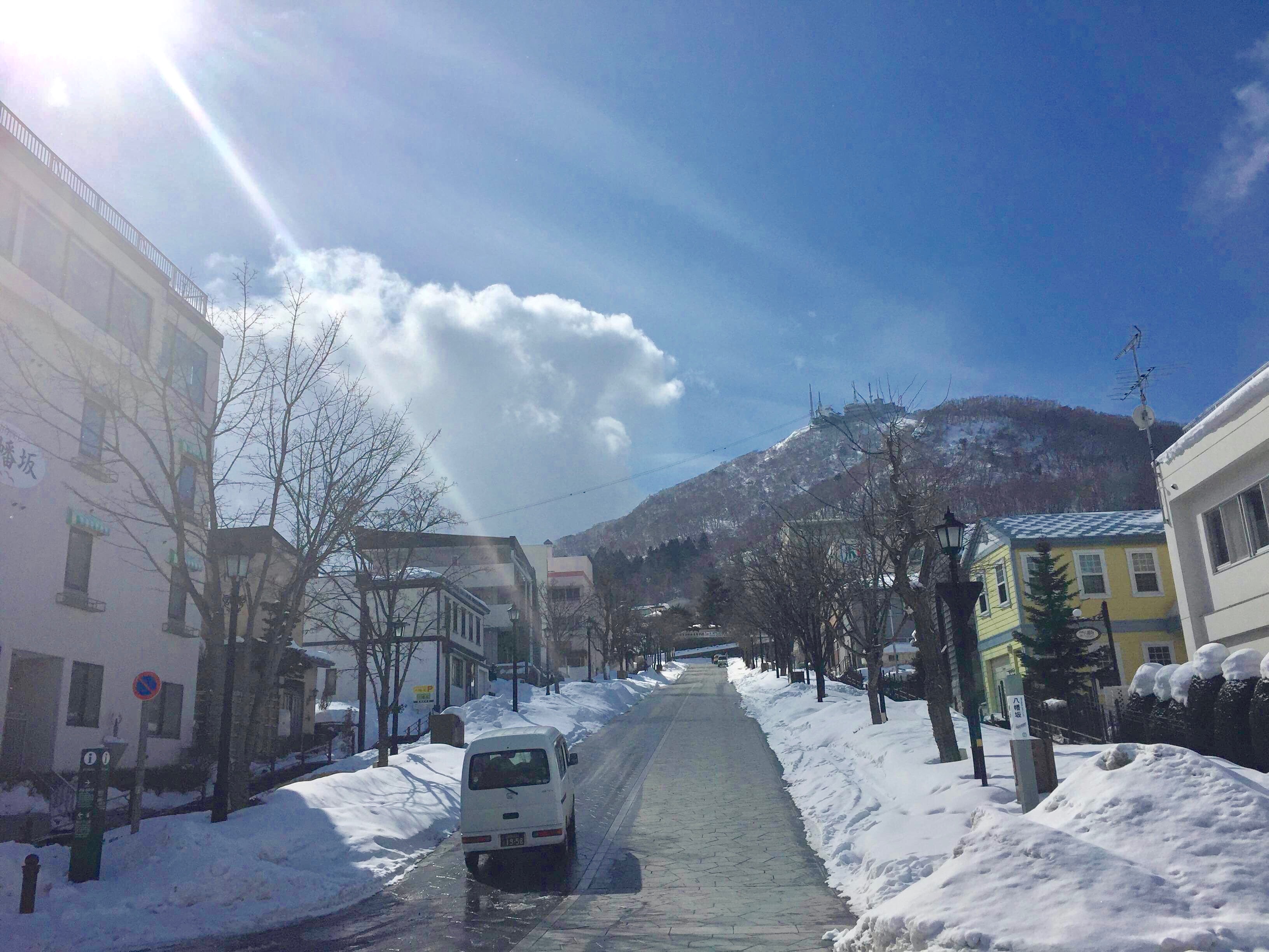 有名な観光スポットでもある八幡坂もこのとおり。