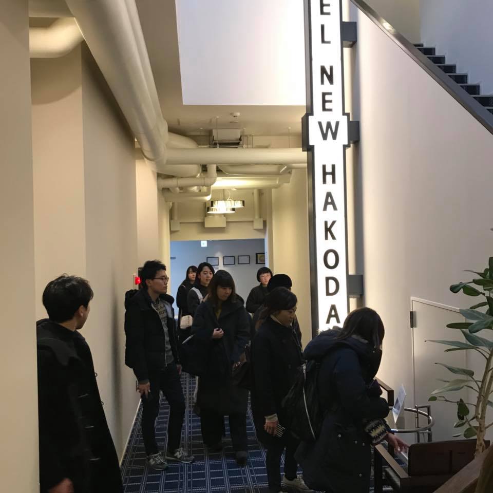 今回の研修先は北海道函館市。宿泊先は㈱リビタがトータルプロデュースする「THE SHARE HOTELS」の3号店で、2017年5月にオープンした「HakoBA 函館」です。