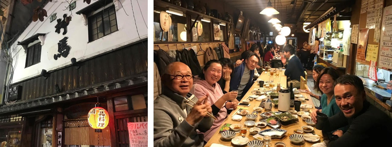 夜はみんなで懇親会。創業昭和9年、風情ある縦に深い京町屋の建物が目を引く居酒屋「神馬」に再集合して、またまた乾杯!とにかく何を食べても、何を呑んでも最高に美味しく、京都の食のレベルの高さに感動しました。