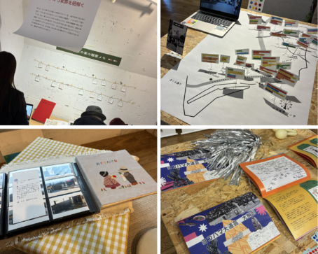 HALLの壁や机の上にはたくさんの展示作品が並んでいたのですが、今回のグループワークがみなとみらいを舞台にしたフィールドワークだったこともあり、わたしたちにとっての身近な風景が彼らの観察によってとても新鮮に感じられ、いつもまちを歩く時に見える景色をもっといろいろな視点で見てみようと思えるような楽しみ方のヒントをいただきました。