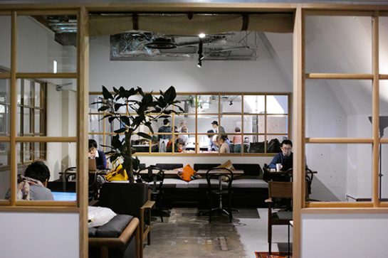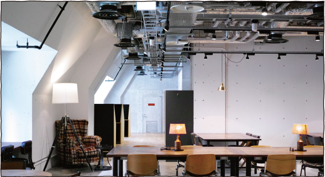 BUKATSUDOには、仕事や勉強などに使えるワークラウンジがあります。気分転換しながら仕事したい方のセカンドオフィスや、資格試験などの自習用のスペースとして。デスク席からソファ席まで、約65席を様々なシーンにあわせてお使いいただけます。週末はおとなりのキッチンで賑やかなパーティが開催されている場合も。平日の日中は比較的静かです。